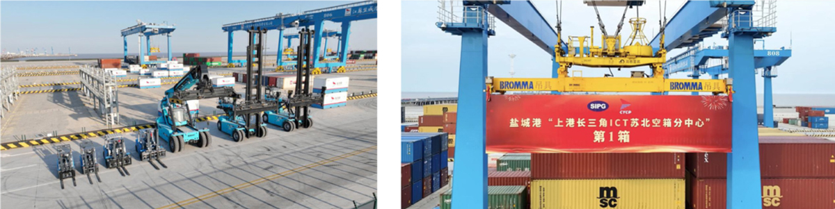 2024年7月,滬鹽兩港合作成立“上港長(zhǎng)三角蘇北20萬(wàn)標(biāo)箱ICT空箱分中心”,年空箱周轉(zhuǎn)能力達(dá)20萬(wàn)標(biāo)箱,提供便捷提還箱服務(wù),與“滬鹽專線”協(xié)同引導(dǎo)企業(yè)“陸改水”,提高“鹽貨鹽運(yùn)”比例。
