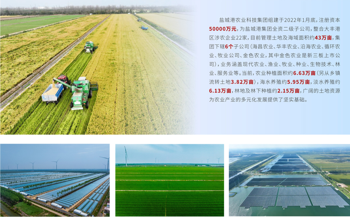 近年來,公司發(fā)揮資源優(yōu)勢,大力發(fā)展現(xiàn)代農(nóng)業(yè)、數(shù)字農(nóng)業(yè)、生態(tài)農(nóng)業(yè)、智慧農(nóng)業(yè),引導(dǎo)傳統(tǒng)養(yǎng)殖業(yè)、種植業(yè)、林業(yè)向高附加值產(chǎn)業(yè)過渡,錨定打造全國爭先、全省領(lǐng)先、全市率先的“現(xiàn)代科技農(nóng)業(yè)樣板區(qū)”的目標(biāo),高標(biāo)準(zhǔn)推進(jìn)數(shù)字化精品種植示范區(qū)、機(jī)械化高效農(nóng)業(yè)示范區(qū)、循環(huán)化綠色種養(yǎng)示范區(qū)、生態(tài)化水產(chǎn)養(yǎng)殖示范區(qū)、低碳化綠色能源示范區(qū)、多元化林下經(jīng)濟(jì)示范區(qū)“六大示范區(qū)”建設(shè),打造農(nóng)業(yè)發(fā)展“新高地”,為鹽城港高質(zhì)量發(fā)展賦能助力,為提升鹽城市農(nóng)業(yè)現(xiàn)代化水平作出貢獻(xiàn)。