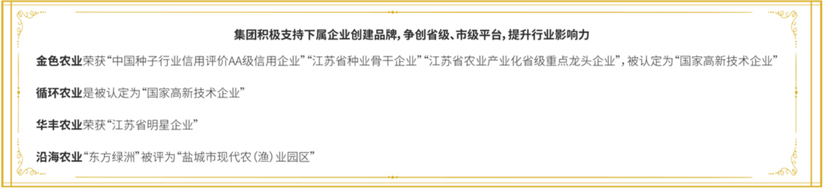 公司除開展日常經(jīng)營業(yè)務(wù)外,還高度重視農(nóng)業(yè)科技運用,孵化培育有國家高新技術(shù)企業(yè)2家,設(shè)有1個博士后工作站、3個研究生工作站,建有農(nóng)業(yè)部可再生能源清潔化利用實驗基地、江蘇省優(yōu)質(zhì)稻麥工程技術(shù)研究中心、鹽城市工程技術(shù)研究中心、鹽城市市級企業(yè)技術(shù)中心、鹽城市農(nóng)機(jī)化科技示范基地,已通過國家、省級審定品種20個,申報各類專利84項,不斷探索和應(yīng)用現(xiàn)代農(nóng)業(yè)科技,為傳統(tǒng)農(nóng)業(yè)賦能增效。