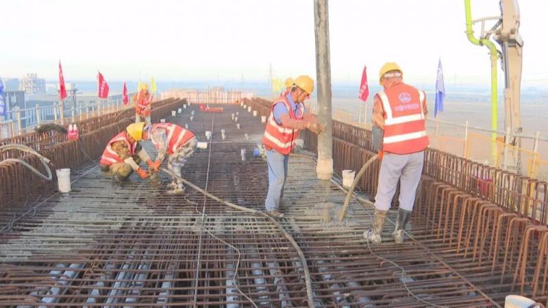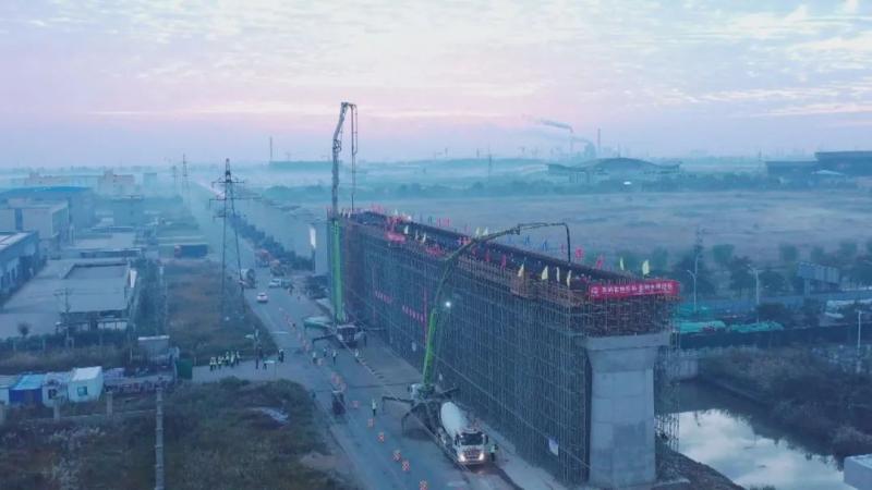 “我們承建的大豐港特大橋全長17.949公里,目前項目首個支架現(xiàn)澆梁一次性澆筑已完成,連續(xù)梁澆筑的完成標志著大豐港鐵路支線施工建設(shè)進入新的階段。”大豐港鐵路支線工程3標經(jīng)理部現(xiàn)場負責人陳甫軍告訴記者。