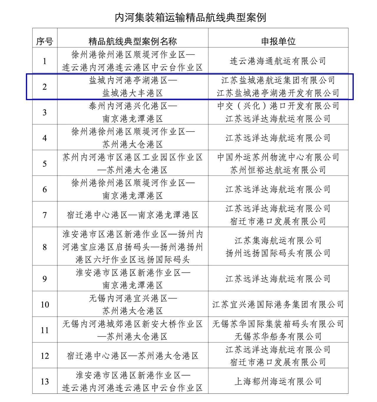 內河集裝箱綠色示范航線(大豐港區—亭湖港區)