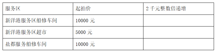 新洋港服務區船修車間和超市及鹽都服務區船修車間競租項目競拍須知
