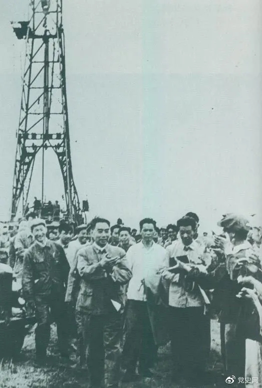 1962年6月,周恩來到大慶視察。這是在1202鉆井隊(duì)現(xiàn)場參觀。