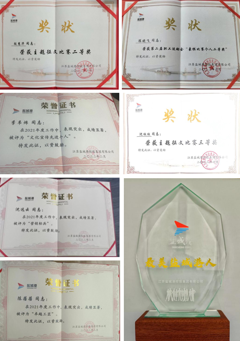 2022年,文旅集團黨總支和港泊半島酒店支部被評為“先進基層黨組織”。文旅集團洪兵、韓世軍在鹽城港集團“七一”表彰中獲評優(yōu)秀共產(chǎn)黨員稱號,蔣雷獲評優(yōu)秀共青團員稱號。港泊半島酒店職工張曉芳、湯以新、蔣慧等同志分別獲得大豐區(qū)技能狀元、鹽城市技術(shù)能手、大豐區(qū)五一勞動獎?wù)隆⒋筘S區(qū)青年崗位能手、大豐區(qū)巾幗建功標兵稱號。