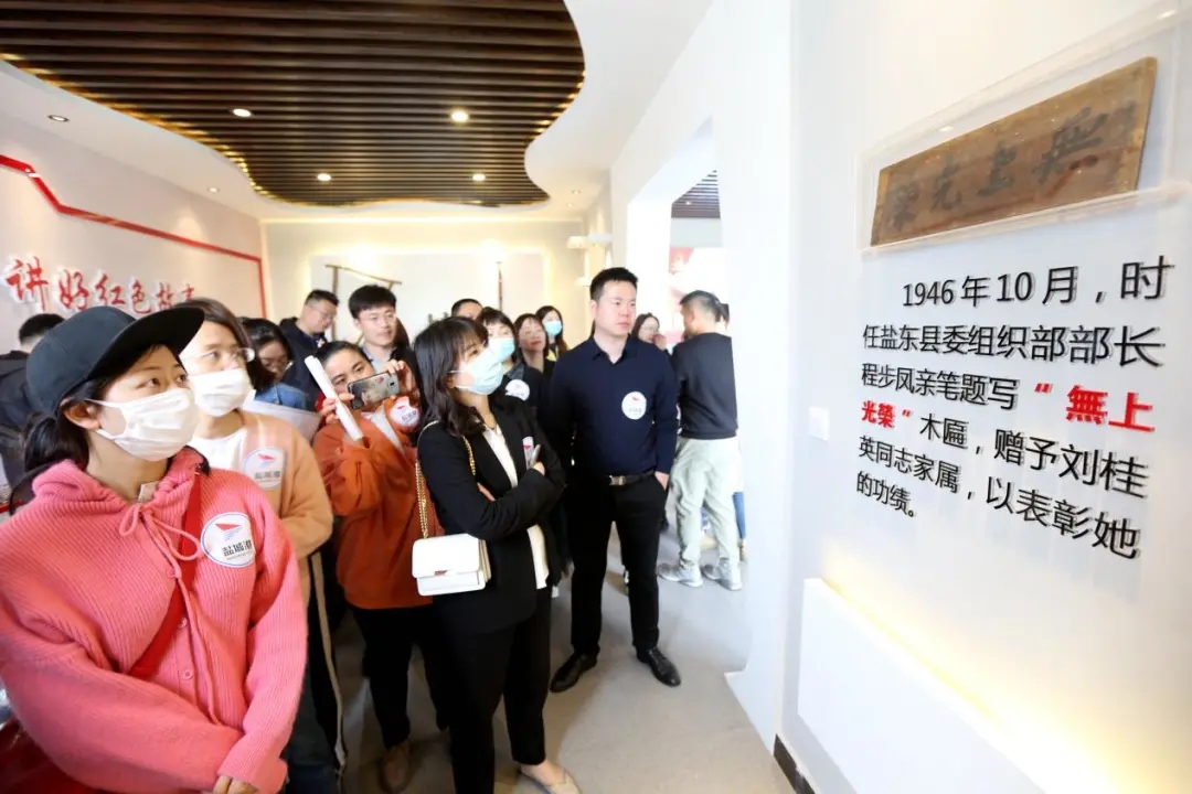 黨團共建、走進紅色基地,在桂英紅色教育紀念館,鹽城港集團青年職工代表們在解說員的引導下,詳細了解紅色革命歷史,對劉桂英烈士英勇奮戰、不懼犧牲的大無畏精神有了更深的感悟。大家們紛紛表示,要銘記烈士精神,充分發揚劉桂英烈士革命精神的感召力量,把紅色基因傳承下去,珍惜現在的幸福生活,更加努力學習和工作。隨后,青年職工代表們在烈士紀念碑前緬懷為革命事業獻出生命的先烈們。