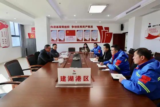 當(dāng)天下午,受集團(tuán)黨委委托,集團(tuán)相關(guān)部門、陸港集團(tuán)主要負(fù)責(zé)同志前往建湖港區(qū),看望慰問堅(jiān)守在一線工作崗位的工作人員,并向他們送上慰問品。隨后舉行座談會(huì),就港區(qū)生產(chǎn)經(jīng)營和發(fā)展展開交流。