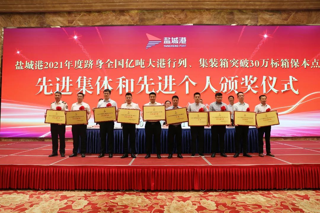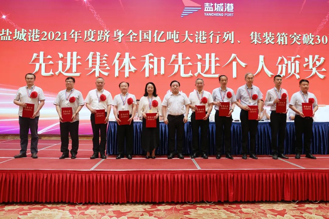 大會在雄壯的國歌聲中開幕。會議宣讀了《關于表彰2021年度躋身全國億噸大港行列、集裝箱突破30萬標箱保本點先進集體和個人及新時代“百團大戰(zhàn)”優(yōu)秀組織獎和先進個人的決定》《關于表彰2022年第二屆職工文化藝術節(jié)獲獎先進集體和個人的決定》《關于表彰“最美鹽城港人”的決定》,并現(xiàn)場為先進集體和先進個人代表進行頒獎。