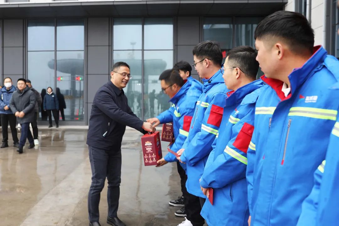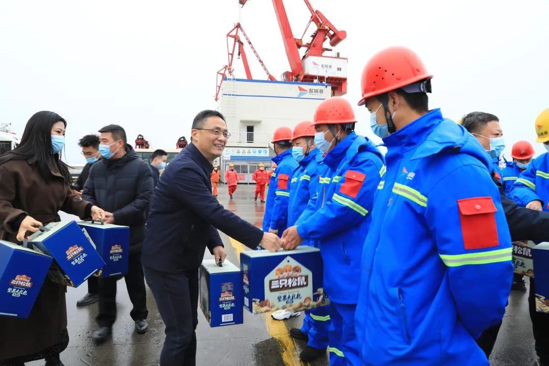 1月22日,大年初一,碼頭一線到處洋溢著節(jié)日喜慶氣氛。受集團(tuán)黨委、董事會(huì)委托,當(dāng)天上午,集團(tuán)黨委副書(shū)記、董事、總經(jīng)理陸帥率隊(duì)前往大豐港區(qū)看望慰問(wèn)堅(jiān)守在一線工作崗位的工作人員,代表集團(tuán)黨委、董事會(huì)向他們致以新春的祝福和節(jié)日的問(wèn)候。鹽城海關(guān)二級(jí)高級(jí)主辦李健,集團(tuán)副總經(jīng)理袁欣等參加。