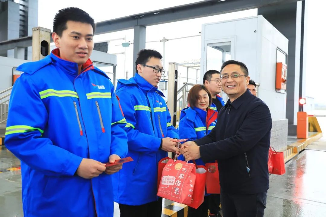 鹽城港港口公司2022年的貨物吞吐量再創(chuàng)歷史新高,為集團(tuán)實(shí)現(xiàn)兩年翻番的目標(biāo)作出了重要貢獻(xiàn)。在港口公司糧食碼頭,陸帥和堅(jiān)守崗位的工作人員一一握手,感謝大家的默默奉獻(xiàn)以及為保障港口安全平穩(wěn)運(yùn)行而付出的努力。他希望港口公司全體干部職工在2023年繼續(xù)以黨的二十大精神為指引,深入貫徹落實(shí)集團(tuán)黨委一屆三次全體(擴(kuò)大)會(huì)議部署要求,進(jìn)一步提高政治站位,扎實(shí)履行好崗位職責(zé),繼續(xù)發(fā)揚(yáng)能吃苦、能戰(zhàn)斗、能奉獻(xiàn)、敢擔(dān)當(dāng)?shù)膬?yōu)良作風(fēng),更加堅(jiān)定目標(biāo)信心,抓實(shí)抓牢碼頭生產(chǎn)經(jīng)營(yíng)各項(xiàng)工作,為集團(tuán)高質(zhì)量融合發(fā)展再創(chuàng)佳績(jī)、再立新功。