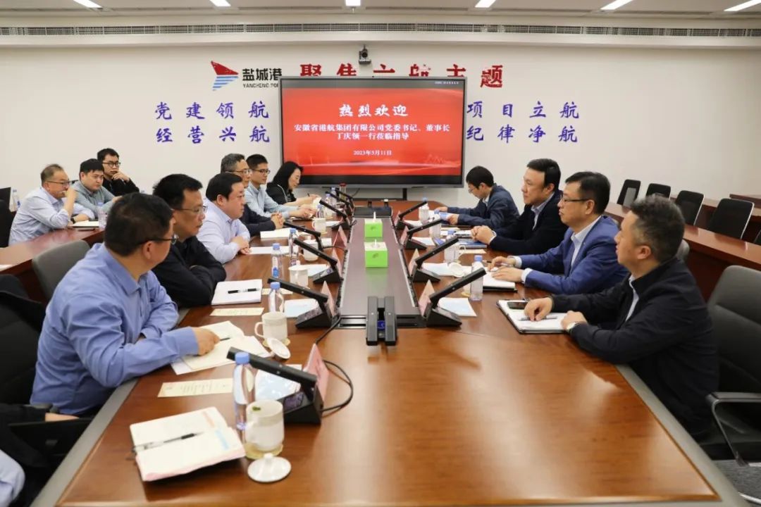 周正雄對(duì)丁慶領(lǐng)一行的到訪表示歡迎,對(duì)安徽省港航集團(tuán)在鹽城港發(fā)展過(guò)程中給予的關(guān)心和支持表示感謝,并介紹了鹽城港相關(guān)情況。他說(shuō),2020年,市委、市政府整合全市沿海和內(nèi)河港口資源,形成河海聯(lián)運(yùn)一體化格局,實(shí)現(xiàn)以港口資源的高效整合利用帶動(dòng)港城、港產(chǎn)聯(lián)動(dòng)發(fā)展。集團(tuán)成立以來(lái),著力強(qiáng)化內(nèi)外資源整合優(yōu)化,全力以赴抓好生產(chǎn)經(jīng)營(yíng),于2021年首次躋身全國(guó)億噸大港行列,并在全國(guó)沿海港口競(jìng)爭(zhēng)中持續(xù)實(shí)現(xiàn)爭(zhēng)先進(jìn)位,同時(shí)在前兩年發(fā)展的基礎(chǔ)上深入開展全面深化改革創(chuàng)新各項(xiàng)工作,為如期完成集團(tuán)首個(gè)五年規(guī)劃各項(xiàng)目標(biāo)任務(wù)打好基礎(chǔ)。當(dāng)前,集團(tuán)搶抓淮河入海水道改航道契機(jī),將淮河流域作為未來(lái)發(fā)展的重點(diǎn)領(lǐng)域和方向,持續(xù)深耕淮河流域市場(chǎng),加快融入國(guó)內(nèi)國(guó)際雙循環(huán)新格局,努力為港口在未來(lái)發(fā)展中贏得先機(jī)、贏得主動(dòng)。懇請(qǐng)安徽省港航集團(tuán)一如既往地關(guān)注和支持鹽城港的發(fā)展,鹽城港有信心與安徽省港航集團(tuán)在碼頭共建、汽車滾裝運(yùn)輸業(yè)務(wù)開拓等領(lǐng)域加強(qiáng)合作,實(shí)現(xiàn)雙方合作共贏。