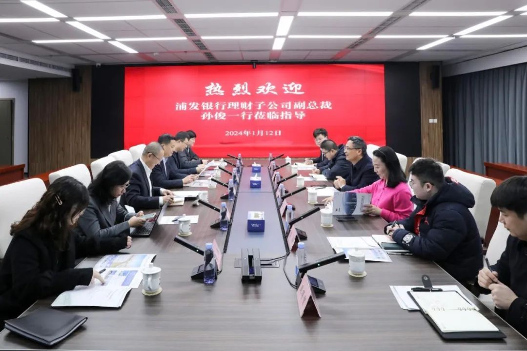 1月12日,浦發(fā)銀行理財(cái)子公司副總裁孫俊率隊(duì)拜訪我集團(tuán),雙方就進(jìn)一步開(kāi)展全面深入的金融合作,推動(dòng)實(shí)現(xiàn)更高質(zhì)量發(fā)展進(jìn)行交流討論,集團(tuán)黨委副書(shū)記、董事、總經(jīng)理陸帥接待孫俊一行。浦發(fā)銀行鹽城分行黨委書(shū)記、行長(zhǎng)李明,集團(tuán)副總經(jīng)理袁欣,集團(tuán)投融資部相關(guān)負(fù)責(zé)同志等參加。