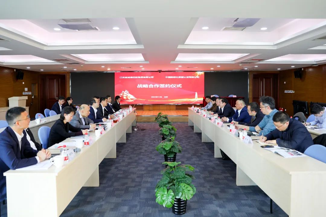 田偉對周正雄一行的到來表示歡迎,并介紹了認證公司相關(guān)情況。他說,中國船級社質(zhì)量認證有限公司(CCSC)是中國船級社(CCS)承擔陸上檢服務(wù)認證檢驗與認證業(yè)務(wù)的專門機構(gòu),近年來聚焦港口、船舶、新能源等領(lǐng)域,業(yè)務(wù)范圍包括管理體系認證、產(chǎn)品認證、風險管理集裝箱檢驗、綠色低碳、安全業(yè)務(wù)等方面。雙方發(fā)展理念、業(yè)務(wù)領(lǐng)域高度契合,有著廣闊的合作空間,CCSC將以此次協(xié)議簽訂為契機,緊密圍繞鹽城港發(fā)展實際,開展全方位合作,合力推動雙方做強做優(yōu)做大,實現(xiàn)更高質(zhì)量發(fā)展。
