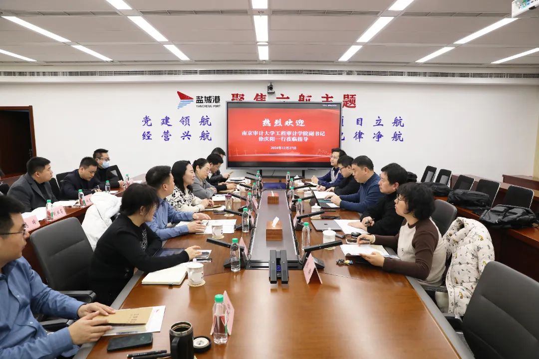 袁欣對徐慶陽一行的到來表示歡迎,并介紹了鹽城港相關(guān)情況。她說,自集團成立以來,集團高度重視依法治企、合規(guī)管理工作,始終將審計工作擺在重要位置,扎實推動“五大監(jiān)督”“雙體檢”等創(chuàng)新舉措,不斷提高風險防范能力,著力提升合規(guī)管理水平。當前,鹽城港充分發(fā)揮審計工作“找問題、明方向”作用,對重大項目開展“回頭看”,確保手續(xù)齊全、流程規(guī)范,依法合規(guī)推進項目建設(shè)。同時,集團聚焦人才引進,不斷擴充審計人才庫,為未來健康可持續(xù)發(fā)展提供堅實人才支撐。南京審計大學作為審計類人才的智庫和搖籃,在人才培養(yǎng)等方面擁有專業(yè)的師資力量,懇請南京審計大學在財務、審計、法務、融資專業(yè)人才培養(yǎng)等方面給予鹽城港更多支持,為鹽城港一體化融合高質(zhì)量發(fā)展注入新活力。