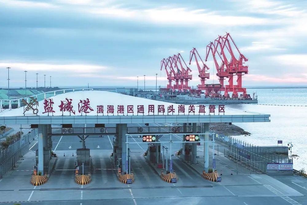 在基礎(chǔ)設(shè)施建設(shè)上,鹽城港先后完成灌河口5萬噸級航道、響水港區(qū)重件碼頭、射陽港區(qū)3.5萬噸級航道、大豐港區(qū)綜合倉儲物流、濱海港區(qū)物流園堆場等一批重大項(xiàng)目建設(shè),實(shí)現(xiàn)“一港四區(qū)”萬噸級以上航道通航全覆蓋,累計(jì)完成投資超200億元。大豐港區(qū)單船裝卸屢創(chuàng)紀(jì)錄,響水、濱海、射陽港區(qū)生產(chǎn)運(yùn)營連年倍增,跨境電商蓬勃發(fā)展,汽車進(jìn)出港量取得突破,累計(jì)完成起亞、奇瑞等品牌汽車滾裝作業(yè)量超6萬輛。2024年全港貨物吞吐量突破1.6億噸,提前一年實(shí)現(xiàn)“十四五”翻兩番的目標(biāo)。