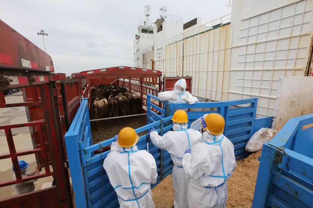 早在船舶抵港前一周,鹽城港船舶代理公司便聯(lián)系各方召開(kāi)了船前會(huì),部署安排各項(xiàng)準(zhǔn)備工作,及時(shí)向船方通報(bào)相關(guān)要求,同時(shí)密切關(guān)注航行動(dòng)態(tài)以及活牛健康狀況。到港前,正值強(qiáng)對(duì)流天氣多發(fā)季節(jié),碼頭人員密切關(guān)注天氣狀況,天氣一經(jīng)轉(zhuǎn)好便聯(lián)系引水拖輪,搶抓窗口期安排船舶進(jìn)港,同時(shí)提前安排轉(zhuǎn)運(yùn)車輛消殺進(jìn)港,船舶靠港后,碼頭工作人員認(rèn)真組織防疫、消殺工作,在最短時(shí)間內(nèi)完成聯(lián)檢工作,為活牛卸船爭(zhēng)取了時(shí)間。