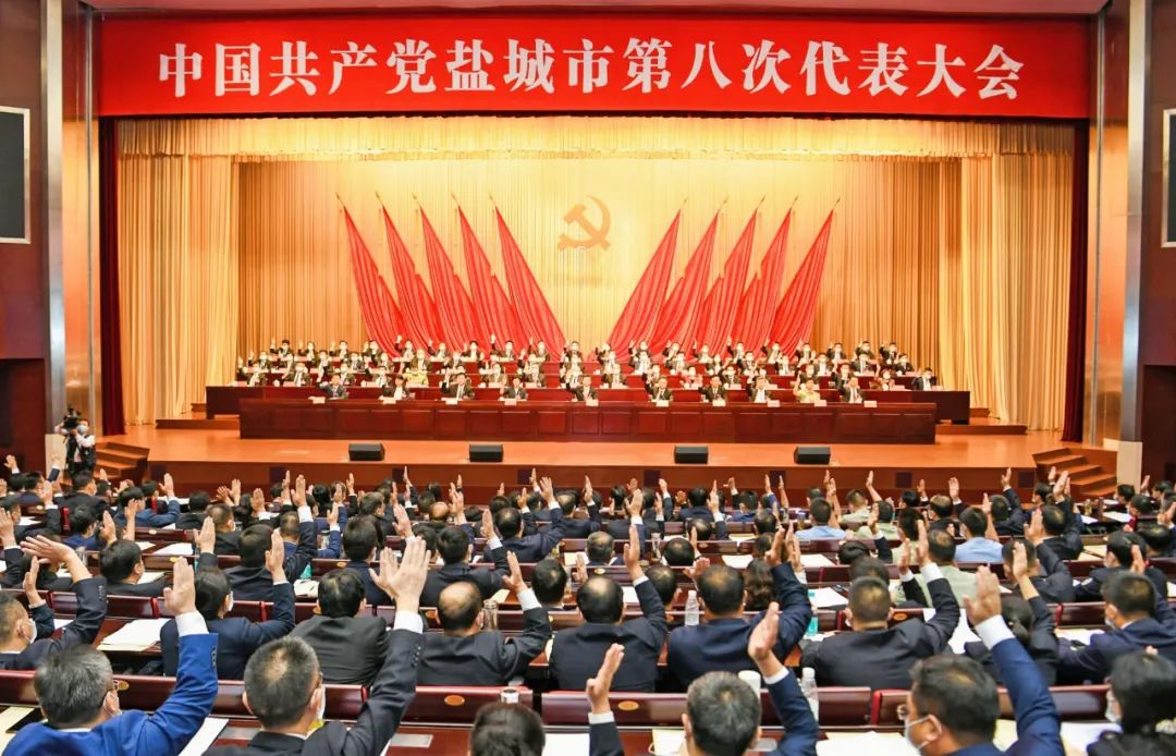9月25日,中國共產(chǎn)黨鹽城市第八次代表大會在選舉產(chǎn)生新一屆中共鹽城市委員會和市紀(jì)律檢查委員會,通過關(guān)于七屆市委報告的決議、關(guān)于市紀(jì)委工作報告的決議后,在市行政中心人民大會堂勝利閉幕。
