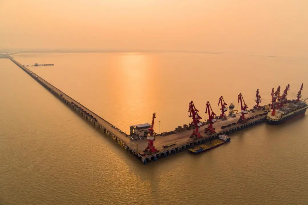 陣陣秋風(fēng)吹散晨霧,金色的陽光灑進(jìn)大豐港區(qū),給整個(gè)港區(qū)披上一層蟬翼般的金紗。