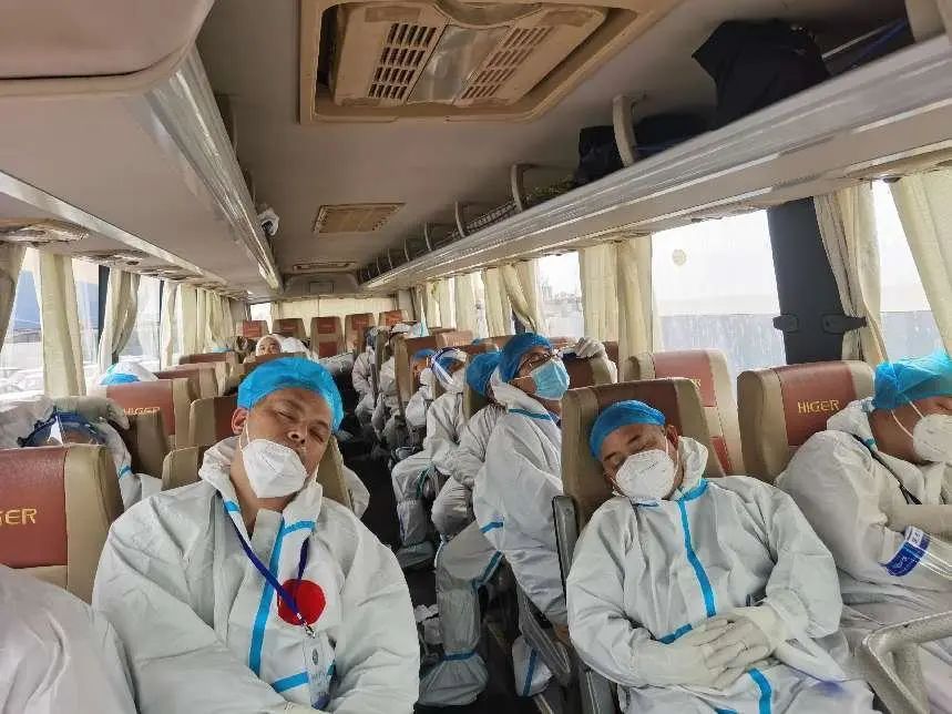 面對30小時連續作業,他們傾力付出,勇于奉獻。困了累了只能在臨時休息點(中巴車)稍作休息。