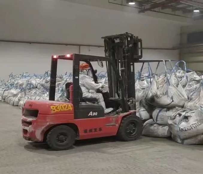 (叉車(chē)駕駛員在保稅區(qū)進(jìn)行噸袋裝卸)
