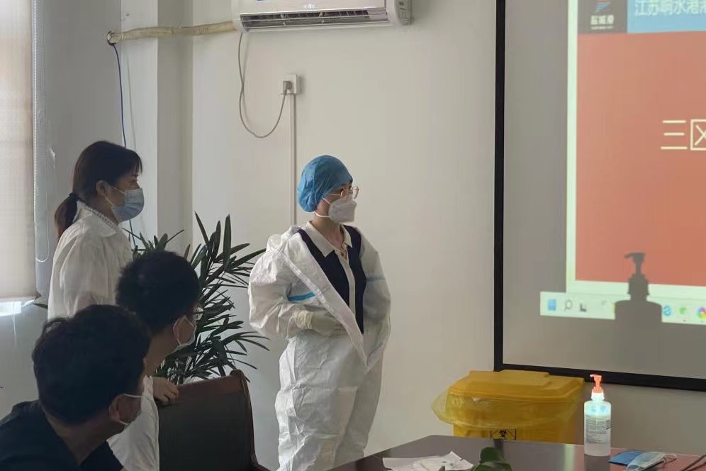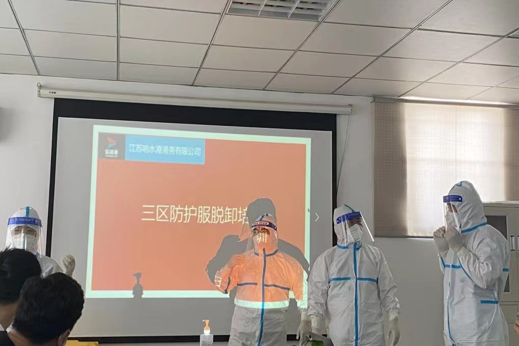 為堅決打好新型冠狀病毒疫情防控阻擊戰,全面提高應對疫情的響應能力,熟悉應急處置具體流程,從嚴抓好疫情防控工作,近日,響水港區港務公司特邀響水縣港城醫院專職醫護人員,對港區作業人員進行疫情防控相關的三區防護服穿脫消殺培訓。