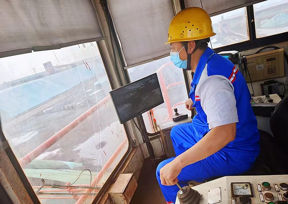 我的“座駕”是堆取料機,我們的任務(wù)是連續(xù)裝卸貨物。在卸船碼垛作業(yè)時,我們熟練使用多層加高法,將每一船貨物堆碼成標(biāo)準(zhǔn)堆垛。在取料作業(yè)時,我們運用嫻熟的取料技術(shù),將貨物又快又均勻的轉(zhuǎn)運到皮帶機上,高效率、高質(zhì)量完成各項生產(chǎn)任務(wù)。