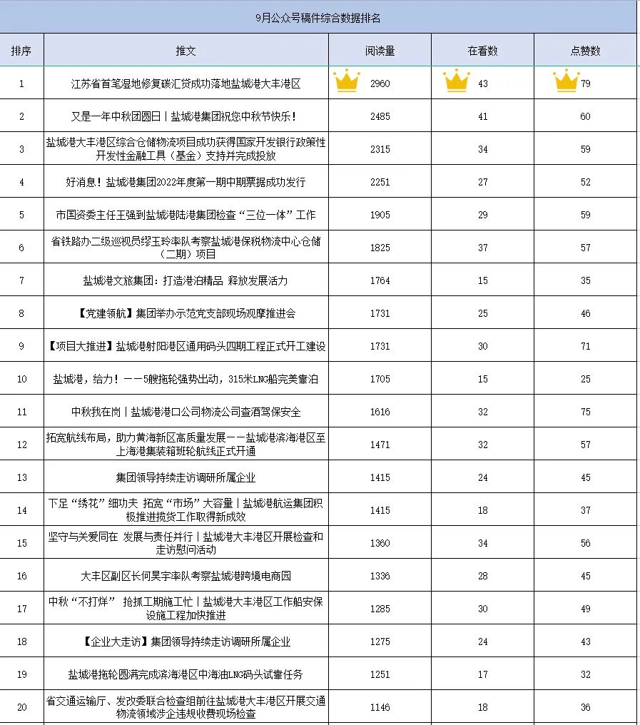 9月,新聞宣傳戰(zhàn)線緊扣集團中心工作,“五大活動”宣傳扎實推進,如火如荼;聚焦中秋等熱點,用心策劃,創(chuàng)新呈現(xiàn)......全方位講好鹽城港故事,傳播鹽城港聲音。