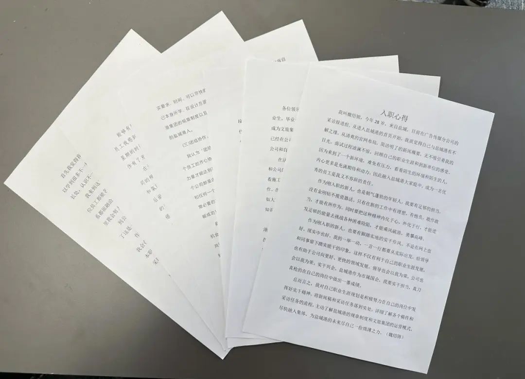 新員工們步入工作崗位后,提高了素質(zhì)修養(yǎng),磨礪了業(yè)務(wù)能力。面對新的環(huán)境、新的起點,他們也有了特別的感悟。“初入鹽城港,不懂的地方比較多,在第一次采訪時,面對突如其來的新聞稿寫作顯得‘手忙腳亂’,但同事們卻沒有絲毫不耐煩,而是熱情地傳授我撰寫、拍攝經(jīng)驗。當(dāng)所有工作圓滿完成后,這種奮斗過后的喜悅,是溢出來的幸福感。”“到文旅集團(tuán)這個大家庭也已經(jīng)有一個月時間了,我跟著前輩們深入碼頭一線,近距離感受鹽城港精神,我將繼續(xù)提高自己的專業(yè)水平,拍出更多更好的作品展現(xiàn)鹽城港的風(fēng)貌。”短短的一個月里,新員工們惜時如金,踏踏實實學(xué)理論,認(rèn)認(rèn)真真練技能,業(yè)務(wù)能力不斷提高,責(zé)任意識持續(xù)增強,為日后工作校準(zhǔn)了方向、蓄積了動能。