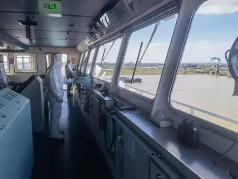 專班引航員們則繼續逆行在海上抗疫一線,日夜堅守、砥礪前行,每次登船他們都穿著一身厚重的防護服、佩戴護目鏡和口罩爬上十幾層高的駕駛臺,面對復雜的水文、潮汐還有通航環境,用精準的操作和指令引領每一條船舶安全平穩地??吭诖a頭。專班引航員們以“舍小家、為大家”的精神持續織牢織密戰“疫”體系、激勵拼搏精神、時刻保持戰斗姿態,做好了打贏“疫情防控阻擊戰”的一切準備,以昂揚地姿態迎接戰“疫”的最終勝利,以優異的成績給鹽城港港航事業獻禮。