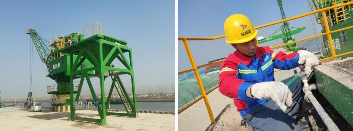 為深入貫徹落實鹽城港集團綠色、生態、智慧、平安、美麗“五新”港口的總體目標要求。近日,科技集團港機公司與亭湖港區就固定式起重機抑塵改造項目進行技術攻關,結合港區實際生產狀況、秉承節約成本的理念,在現有的散貨漏斗上加裝噴淋抑塵裝置,實現噴霧抑塵,解決了在裝卸散雜貨至漏斗的過程中產生的揚塵問題。