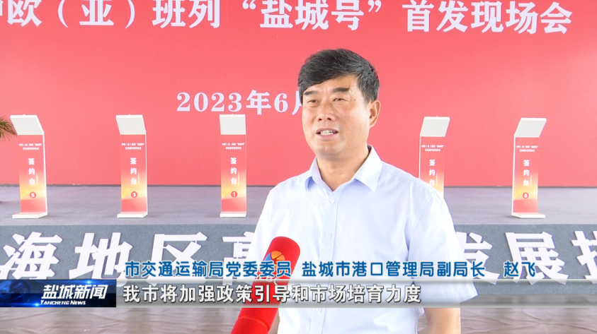 6月16日,中歐(亞)接續(xù)班列“鹽城號”首發(fā)現(xiàn)場會(huì)召開。隨著首發(fā)班列從鹽城北鐵路貨場鳴笛駛出,鹽城至歐(亞)國家國際貨運(yùn)鐵路“大動(dòng)脈”正式打通。