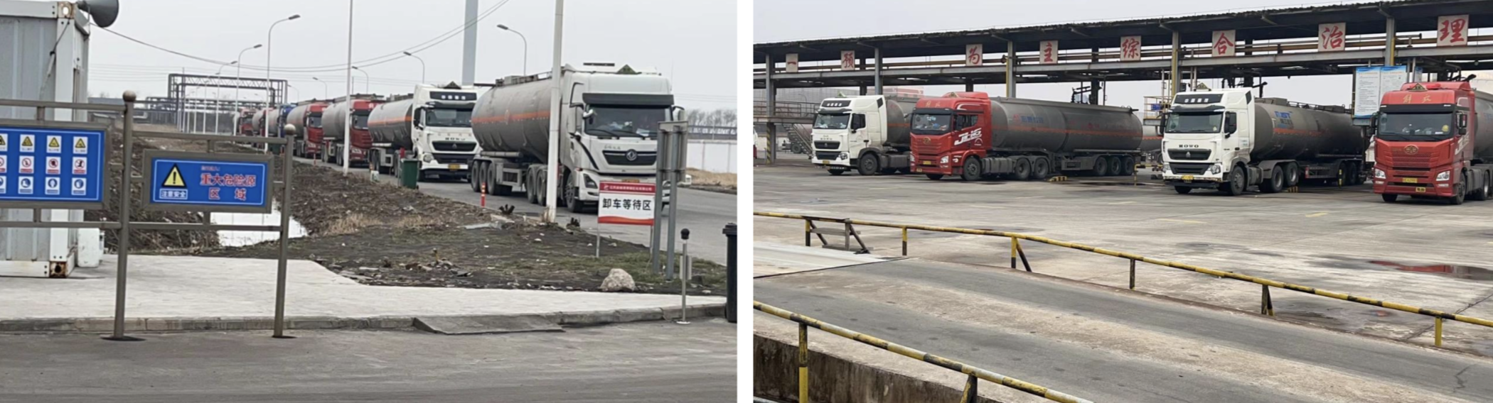 春節期間,港儲石化裝卸作業區外,一派繁忙景象,等待卸貨的車輛早早地排起了長隊。港儲石化全體職工上下一心,擼起袖子加油干,除夕至正月初二,合計完成生產作業吞吐量4500余噸,用實干和堅守打好新年“第一槍”。