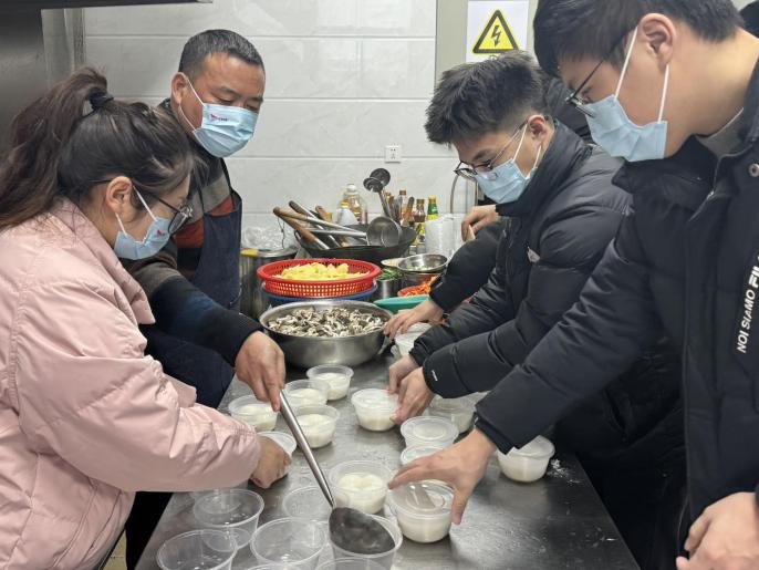 一碗碗熱騰騰的湯圓送到了忙碌在一線的員工手中,所有人吃在嘴里,甜在心里。