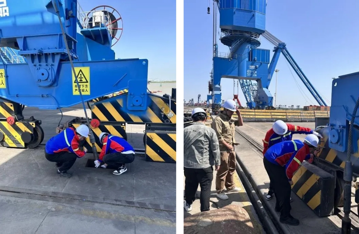 強化預防性維護。組織隊伍對港區(qū)設施設備,尤其是門機、桅桿吊等大型機械進行全面排查,細致檢查了防風索、錨定、夾軌器及防滑靴等關鍵部件,確保設備正常運轉。在臺風天氣前,加大檢查、檢修力度,采取防風加固措施,提高設備抗風險和抗災能力。