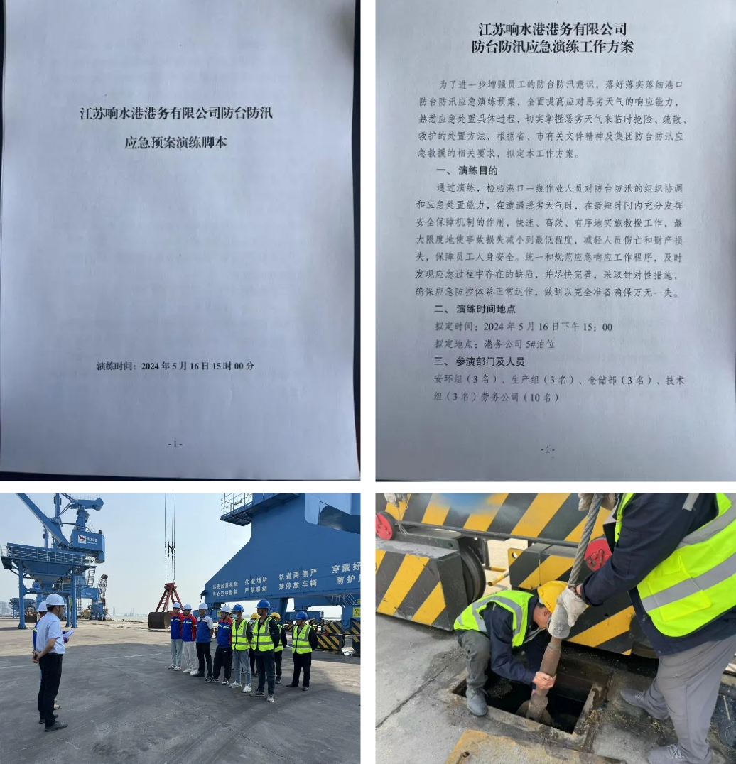 開展現(xiàn)場應急演練。為增強員工防臺防汛意識,全面提高應對惡劣天氣的應急處置能力和協(xié)同配合水平,響水港區(qū)開展防臺防汛應急演練。演練設置貨物轉移、電源切斷、機械固定、搶險救援、人員撤離等場景,演練現(xiàn)場分工明確、配合默契、處置得當,達到了預期效果,進一步驗證了防臺防汛應急救援預案的科學性、實用性和可操作性。