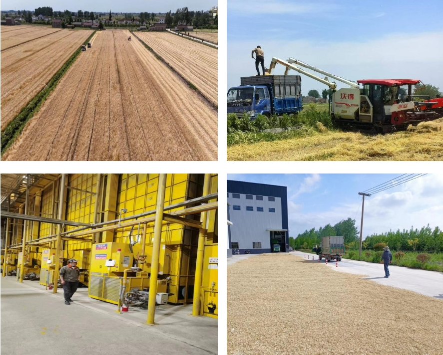 從收割—過磅—烘干,各部門配合生產(chǎn)調(diào)度,全力參與“三夏”大忙,形成“田頭、場頭、倉頭”三位一體的工作機制。農(nóng)技工作人員深入田間地頭,全面摸排登記農(nóng)田實際情況,時刻關注轄區(qū)雨情,研判各地塊成熟時間,按照“成熟一片,收割一片”的原則,第一時間組織聯(lián)合收割機及時入場,確保按期完成收割任務;加工中心的6條種子烘干線馬力全開,做到人歇機不歇,24小時晝夜不停搶烘收割回來的麥子,確保達到標準水分,安全入庫歸倉。