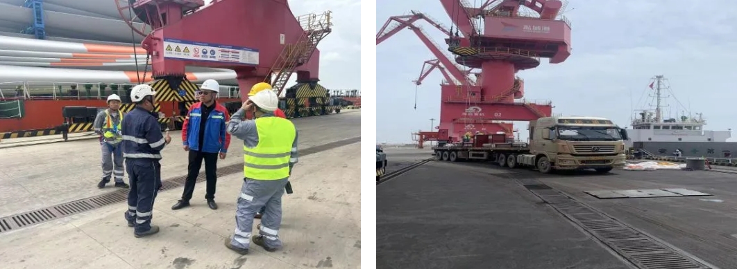 作業過程中,射陽港區選派經驗豐富、素質過硬的門機司機進行卸船作業,根據貨輪進港前期雙方制定的裝貨方案與綁扎方案,全力攻堅推進裝卸作業圓滿完成。“加快速度!確保安全!我們盡量在30個小時內完成這批貨物的裝卸!”他的聲音再次響起,不斷激勵著碼頭全體作業人員。