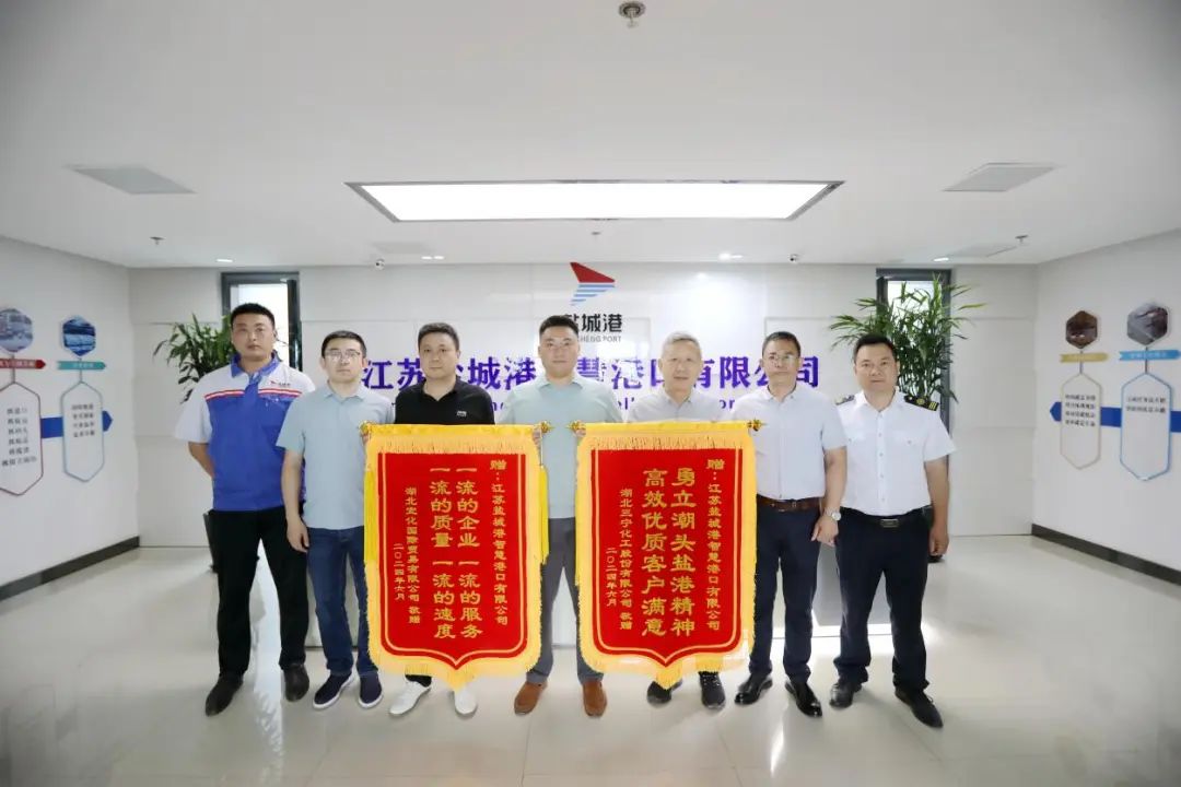 近日,鹽城港智慧港口公司收到湖北宜化國際貿易有限公司和湖北三寧化工股份有限公司贈送的兩面錦旗,“一流的企業 一流的服務 一流的質量 一流的速度”“勇立潮頭鹽港精神 高效優質客戶滿意”,寥寥數字,充分表達了客戶對智慧港口公司在船舶作業期間優質服務的感激之情。