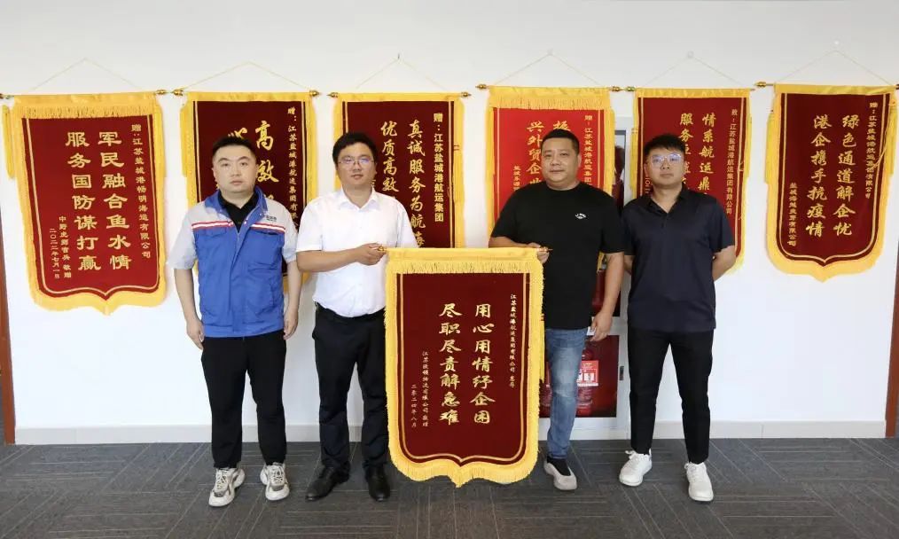 8月30日,江蘇歐領物流有限公司代表送來了寫有“用心用情紓企困,盡職盡責解急難”字樣的錦旗,向鹽城港航運集團積極為其解決用箱難題表示衷心感謝,對鹽城港航運集團優質、高效、貼心的物流服務給予高度贊揚。
