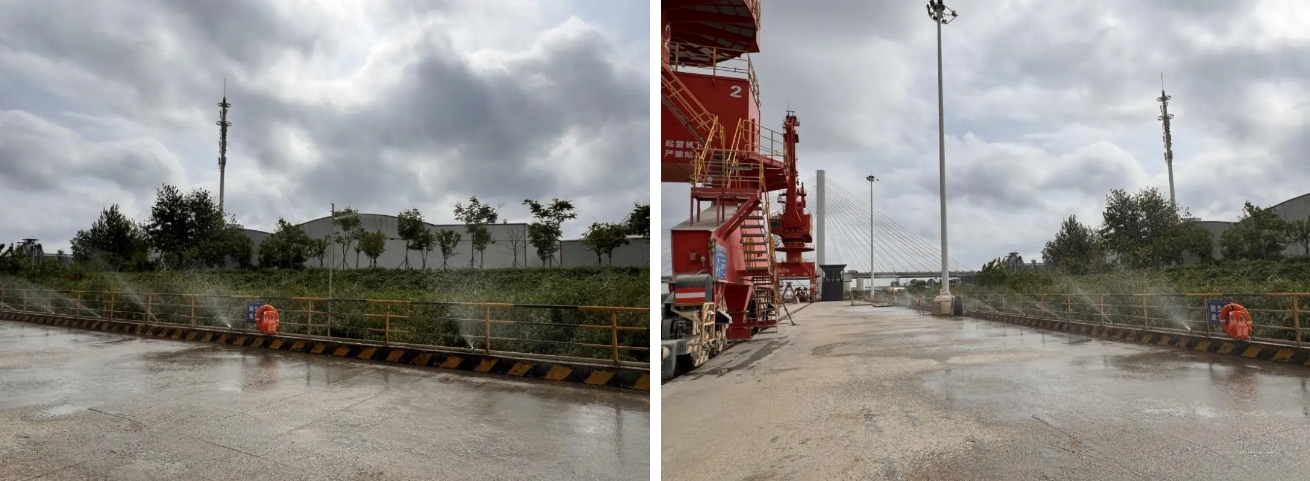 針對碼頭裝卸作業(yè)頻繁、車輛往來運輸極易導致揚塵的問題,響水港區(qū)灌江港務分公司在碼頭前沿進行小改造,在以往前沿基礎設施上增設管道噴淋設施,可根據作業(yè)強度、揚塵濃度、風速等實時調節(jié)噴淋量,確保及時有效控制揚塵,同時還兼顧了車輛通行與人員行走的安全性,為碼頭作業(yè)創(chuàng)造更加干凈、整潔、安全的環(huán)境。