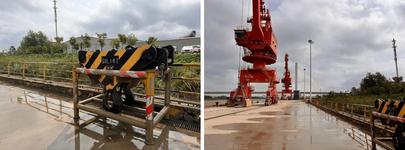 門機吊鉤作為起重機械的關鍵部件,其存放、保養(yǎng)和維護至關重要。為規(guī)范門機吊鉤的存放與管理,灌江港務分公司根據實際需求定制了吊鉤存放支架。該支架采用高強度材料制作,承載力強,穩(wěn)定性高,支架上還設有標識與固定裝置,吊鉤在存放過程中不會混淆和滑落。起重機作業(yè)完畢后,將吊鉤放置在指定支架上,保證了碼頭作業(yè)面的整潔,還有效防止了因吊鉤管理不當而導致的安全事故。