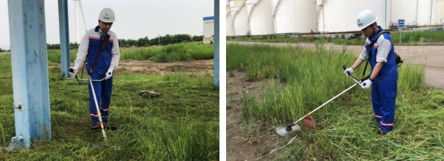 受海邊地質(zhì)土壤環(huán)境影響,港儲(chǔ)石化庫(kù)區(qū)易產(chǎn)生雜草,外包除草成本投入較大,人工清理時(shí)間較長(zhǎng)且治標(biāo)不治本。港儲(chǔ)石化針對(duì)上述情況,結(jié)合降本增效行動(dòng),推進(jìn)庫(kù)區(qū)形象工作,實(shí)行公司一線員工利用加班時(shí)間為公司庫(kù)區(qū)除草,節(jié)省人工成本約0.5萬(wàn)元。