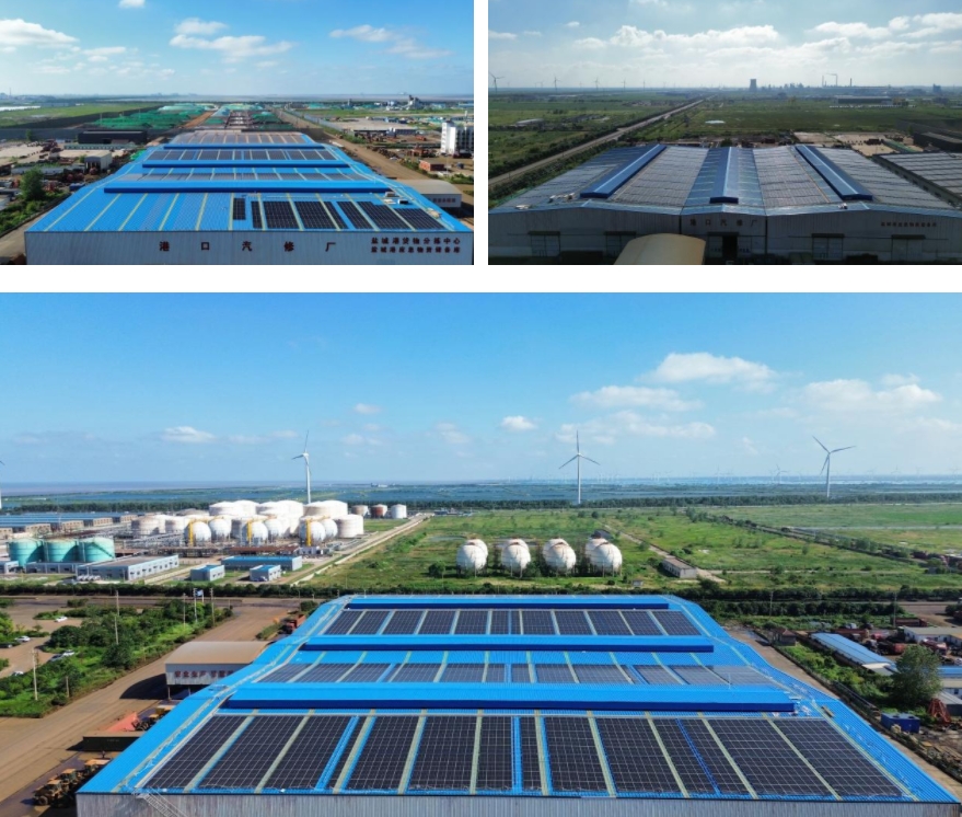 大豐港區汽修倉庫1.2MW屋面分布式光伏建設完成