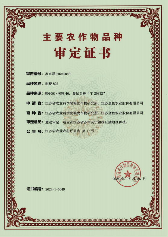 日前,農(nóng)業(yè)科技集團(tuán)與江蘇省農(nóng)業(yè)科學(xué)院糧食作物研究所合作選育的水稻新品種“南粳802”通過江蘇省品種審定。這是繼2020年共同選育通過審定的第一個(gè)水稻品種“南粳7718”后,又一個(gè)通過省級(jí)審定的水稻新品種。