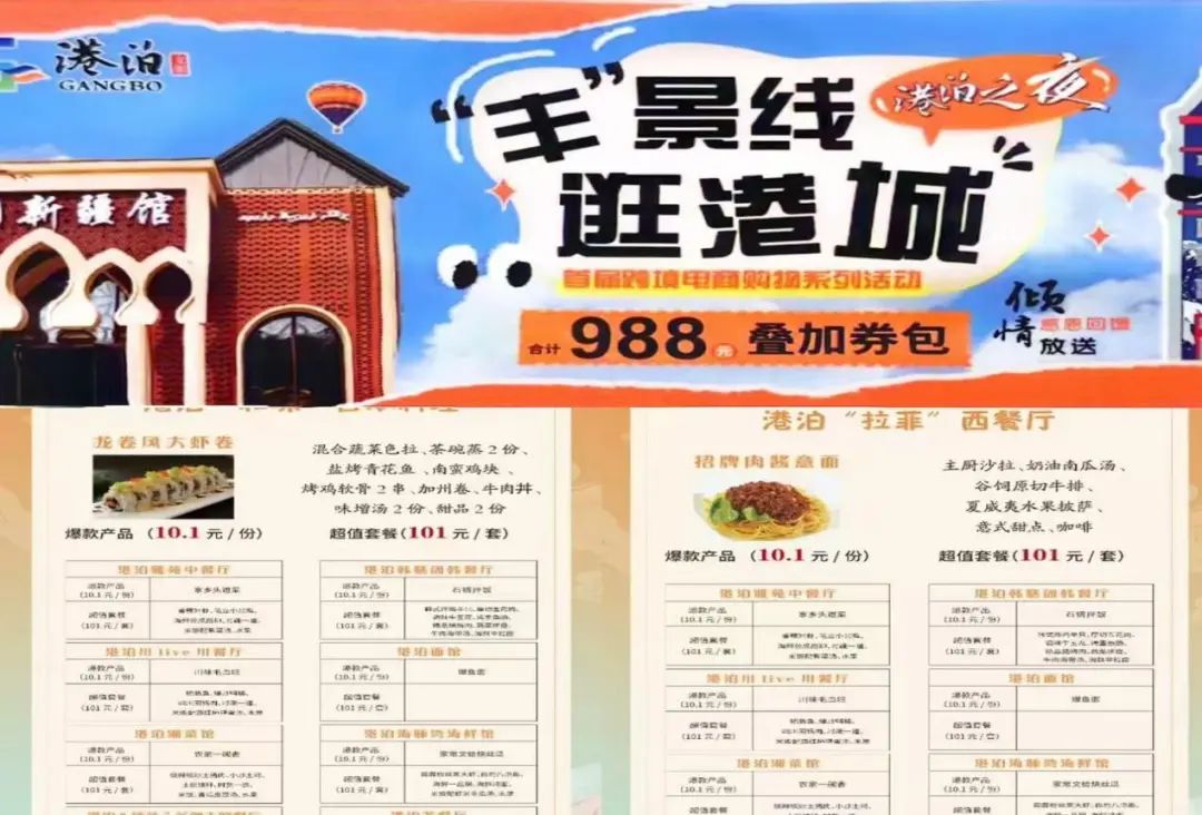 港泊酒店管理分公司旗下餐飲門店位于跨境電商園內,餐飲店鋪匯集了各地美味佳肴,有湘菜館、日料餐廳、海鮮館、新疆館、泰國餐廳、茶餐廳、西餐廳、中餐廳等。
