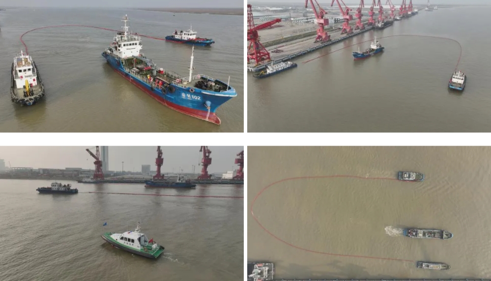 本次演練以“共建共創(chuàng)綠色港口”為目標,模擬碼頭靠港船舶作業(yè)過程中,發(fā)生溢油事故,險情發(fā)生后,相關單位啟動應急預案并組織現(xiàn)場救援,射陽海事處海巡06-165艇迅速管控周邊航道,碼頭溢油保障船舶第一時間到達事故水域,根據(jù)應急預案流程實施救援。現(xiàn)場,隨著國能102、東水110、宇馳98,3艘溢油處置船成功實施布設圍油欄、回收海面污油、噴灑消油分散劑等流程,圓滿完成各項演練預設科目,標志著此次溢油應急處置演練完美收官。