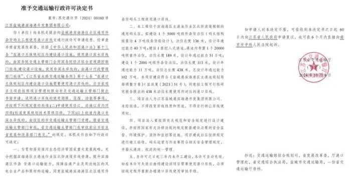 濱海港北區通用件雜貨碼頭工程取得省交通運輸廳港口岸線使用許可