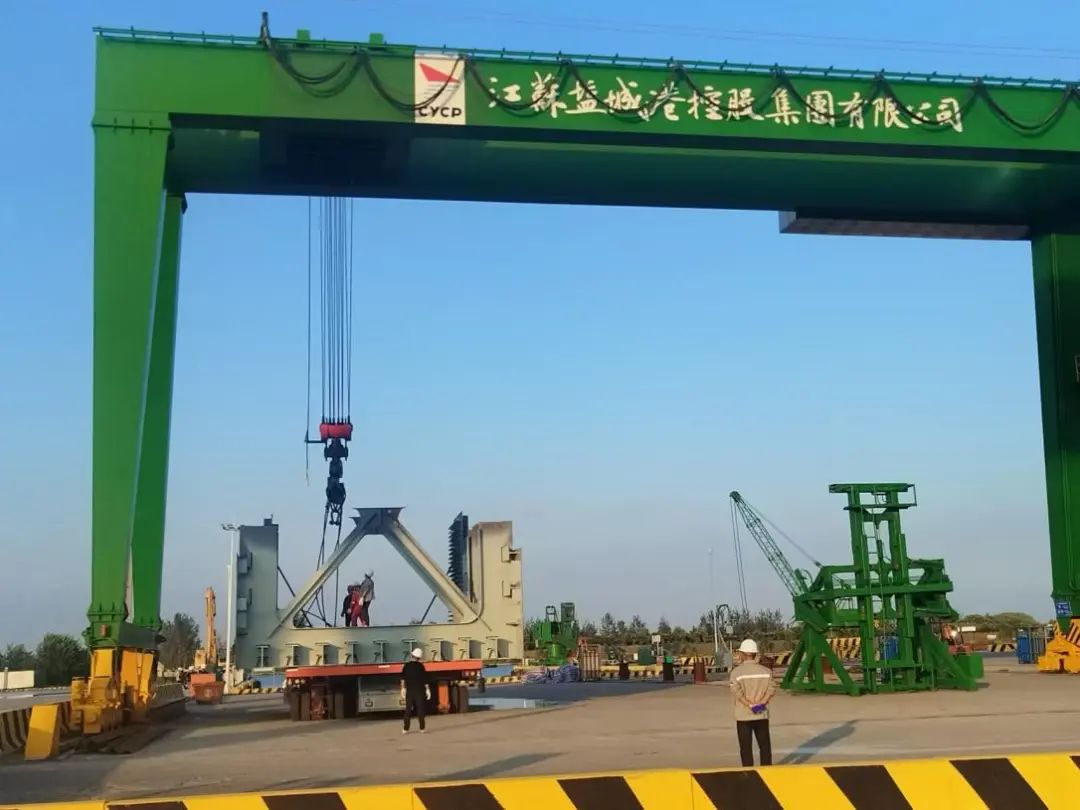 阜寧港600T龍門吊大件吊裝項目首吊成功
