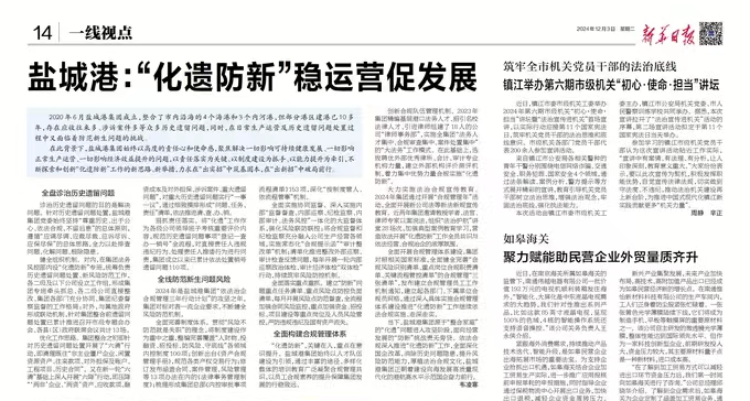 當(dāng)下,鹽城港集團(tuán)源于“整合家庭”的“化遺”問(wèn)題進(jìn)入攻堅(jiān)階段,面向經(jīng)營(yíng)發(fā)展的“防新”挑戰(zhàn)責(zé)無(wú)旁貸。依法合規(guī)深入推進(jìn)“化遺防新”工作,全面深化國(guó)企改革,消除歷史問(wèn)題隱患,提升風(fēng)險(xiǎn)防范能力,厚植法治合規(guī)文化,鹽城港集團(tuán)正朝著建設(shè)向海發(fā)展高質(zhì)量現(xiàn)代化的港航高水平示范國(guó)企奮力前行。