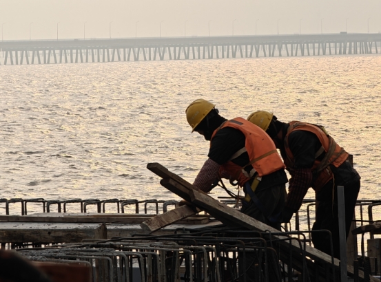 風(fēng)雨如磐,卻擋不住建設(shè)者的腳步。