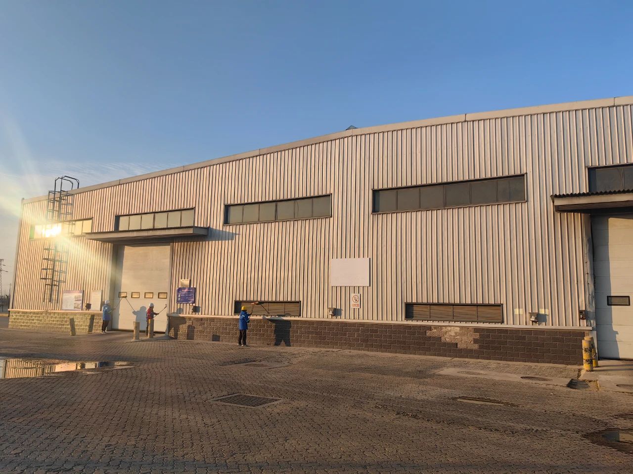 清潔工作嚴格按照專業(yè)流程進行。首先是細致的檢查,專業(yè)人員對倉庫外表面進行全面 “體檢”,標記出污垢嚴重的區(qū)域和可能存在的墻面損傷。接著,進行預沖洗,用低壓水流初步濕潤墻面,為后續(xù)的深度清潔做好準備。然后,根據(jù)污垢類型,均勻涂抹清潔劑,靜靜等待其發(fā)揮作用。在清潔過程中,清潔人員還會密切關(guān)注清潔劑的停留時間,既保證清潔效果,又避免對墻面造成過度腐蝕。最后,用高壓水槍進行徹底沖洗,將溶解的污垢和殘留的清潔劑一并沖走,讓墻面煥然一新。每一個步驟都緊密相連,每一次操作都精準到位,這不僅是對清潔質(zhì)量的嚴格要求,更是對港口倉庫這一重要基礎(chǔ)設(shè)施的精心呵護。